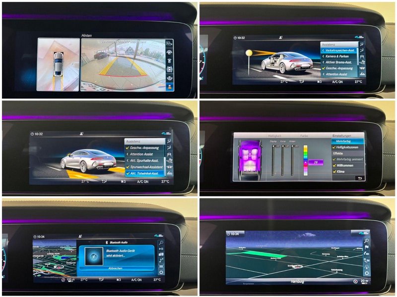 Air-Balance-Paket, Audio-Navigationssystem: COMAND Online, DAB-Tuner (Radioempfang digital), Energizing Komfortsteuerung, Fahrassistenz-Paket Plus, Fahrer-Informations-System (AMG Performance Media), Fondsitzbank 3-Sitzer, Head-up-Display (Frontsichtanzeige), Kamerasystem 360 Grad, Memory-Paket, Metallic-Lackierung, Multifunktions-Telefonie, Multikontursitz-Paket Aktiv, Reifen-Reparaturset (Tirefit), Rücksitzlehne geteilt / klappbar, Scheibenwaschanlage beheizt, Schiebe-/Hebedach elektrisch (Glas), Seitenscheiben hinten und Heckscheibe abgedunkelt, Sender für Garagentoröffner (integriert), Servoschliessung für Türen, Sitzheizung Plus vorn, Sonnenrollo an Heckscheibe (mechanisch), Touchpad (Mittelkonsole), Vorbereitung des digitalen Fahrzeugschlüssels im Smartphone, Vorrüstung Entertainment-System im Fond, Wärme-Komfort-Paket vorn