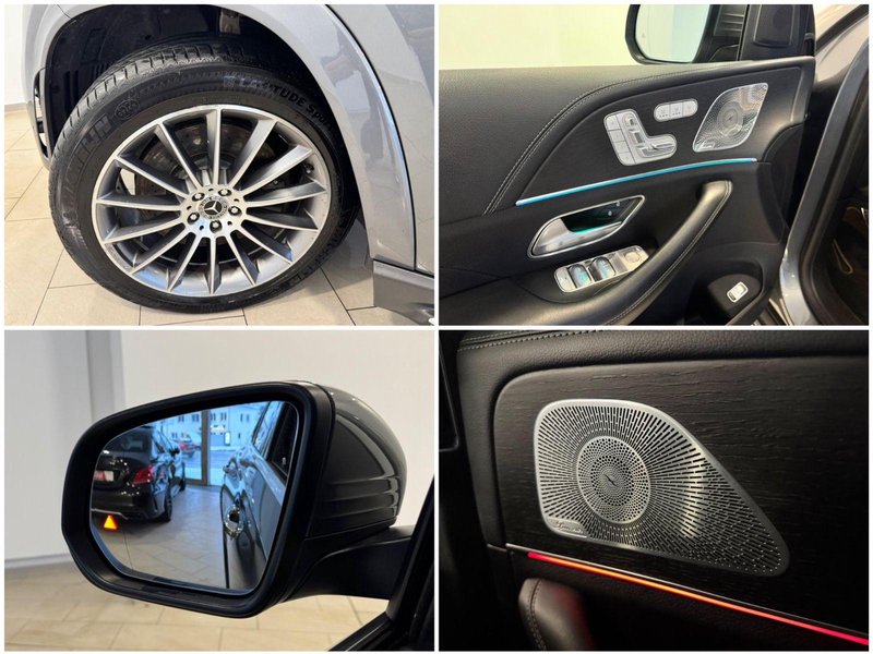 Airmatic Agilitäts-Paket, AMG-Line Interieur, Armaturentafel in Ledernachbildung Artico, Fahrassistenz-System: Anhänger-Rangierassistent (Trailer Assist), Feuerlöscher, Gepäckraum-Abtrennung (Netz), Innenausstattung: Holz Eiche, Innenhimmel schwarz, Klimaautomatik (Thermotronik), Kraftstofftank: vergrößert, LM-Felgen vorn/hinten: 10x21 / 11x21 (AMG, Vielspeichen, himalayagrau), Memory-Paket, Metallic-Lackierung, Panorama-Schiebedach, Park-Paket mit 360° Kamera, Reifen-Reparaturset (Tirefit), Scheibenwaschanlage beheizt, Seitenairbag (Sidebag) hinten, Seitenscheiben hinten und Heckscheibe abgedunkelt, Service-System: MBUX Augmented Reality für Navigation, Sitzbezug / Polsterung: Leder Nappa, Sitze vorn: Klimatisierung, Surround-System Burmester, Trittbretter seitlich (Aluminium), Vorbereitung des digitalen Fahrzeugschlüssels im Smartphone, Vorrüstung car sharing, Vorrüstung Entertainment-System im Fond